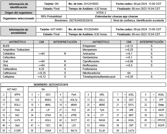 Material and methods: Descriptive, observational, cross-sectional study from November to December 2023 in a second-level hospital, pathogens from primary isolates were identified and biochemical tests with resistance profiles were performed manually and automated, of outbreaks associated with HAIs, quantifying the time of issuance of results.