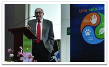 Otras conferencias y simposios fueron: Visión integral de la salud animal y humana; la contribución de la medicina de laboratorio a “UNA SALUD”, impartida por Acad. MVZ Juan Garza Ramos quién es miembro de la Academia Nacional de Medicina y exdirector director del programa nacional de zoonosis y encargado de la Comisión Nacional de Bioética. El Dr. Garza Ramos, propicio compromisos de trabajo conjunto sobre este tema poco abordado en la medicina de laboratorio. Aspecto relevante de “Una Salud” fue el relacionado a las zoonosis, que se han derivado principalmente por la invasión de ecosistemas.