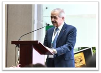 El Acad. Dr. Madrigal Fernández que fue honrado en junio de 2022 como Officer of the Most Excellent Order of the British Empire (OBE) por la reina Isabel II. Presentó su conferencia “Resiliencia ante la adversidad: una vida dedicada a la medicina”, y tanto por su contenido, como por la presentación despertó un gran interés en la audiencia, quienes al finalizar reconocieron al Dr. Madrigal con un prolongado y fuerte aplauso y ovación de pie por varios minutos (FOTOGRAFÍAS 4 y 5).
