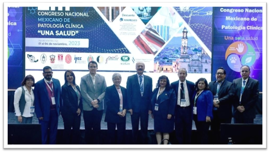 También, el intercambio que se dio en el 1er Simposio conjunto de patología clínica veterinaria y humana de México, con la participación del Colegio de Patólogos Clínicos del Centro y que coordinaron los Dres. Jorge M. Sánchez González y Jesús Rosillo de León entre otros miembros de la FEMPAC. Igualmente los MVZ bridaron temas interesantes como: Impacto de los laboratorios de patología clínica veterinaria en “una salud” por Luis Núñez Ochoa, MVZ, PhD, Presidente fundador de la Sociedad Latinoamericana de Patología Clínica Veterinaria y Certificación en Patología Diagnóstica (SLAPCVCPD), “Enfermedades parasitarias” por Araceli Lima Melo, MVZ, MSc., profesora de Licenciatura y Posgrado (Patología Clínica) en la FMVZ. UNAM. Titular y miembro de la mesa directiva de la SLAPCVCPD, “Leptospirosis” por Karla Mollinedo Beltrán, MVZ, PhD., directora del laboratorio experto sur y que es académica y miembro titular de la SLAPCVCPD; también “Enfermedades micóticas sistémicas” por Verónica Ortiz Encinas, MVZ, MSc., directora general del laboratorio de análisis clínicos veterinarios de Sonora y miembro activo de la SLAPCV. Se resalta el cómo consideraron los profesores, la relevancia de la iniciativa mundial de “Una Salud” ceñida a la práctica profesional en las conferencias presentadas al igual de los estudios de laboratorio que debemos compartir y estandarizar.