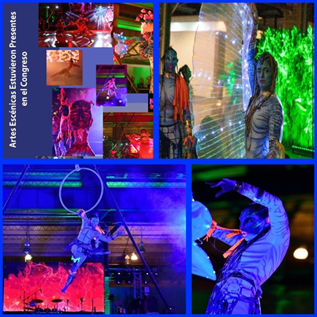 Para un congreso disruptivo inédito e innovador, no podría ser menos importante la cena de clausura, que se llevó a cabo en el emblemático e impresionante salón “locomotoras” del complejo 3 centurias, donde los asistentes fueron recibidos por actores caracterizados de la historia fantástica Avatar, al estilo James Cameron; personajes habitantes interestelares en lo más profundo de la selva Na´vi y ello en relación al tema “Una Salud” y la preservación del medio ambiente, que generó expectación y solicitud de múltiples fotografías por parte de los congresistas que vivieron un entretenimiento con los personajes bailando y participando con los congresistas. El espectáculo de teatro, circo y danza de alta calidad creativa utilizó acrobacia, danza aérea y de piso, malabar y clown, con actos acrobáticos a 12 metros de altura y manipulación de objetos luminosos. Al término de este espectáculo, se tuvo la cena de 4 tiempos que fue amenizada por una de las más destacadas orquestas del occidente del país.