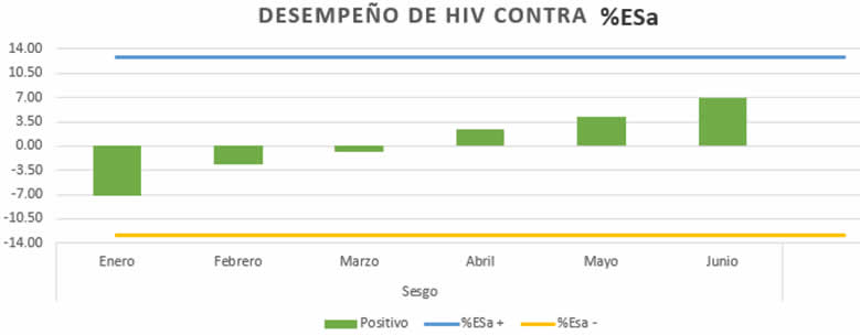 FIGURA 2: Evaluación de desempeño analítico de los %Sesgos mensuales de HIV contra el %ESa.