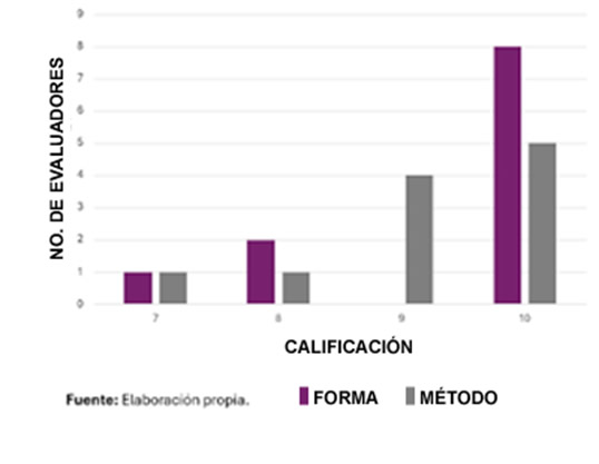GRÁFICA 7: Evaluación del 1 al 10 de la forma y método del instrumento.