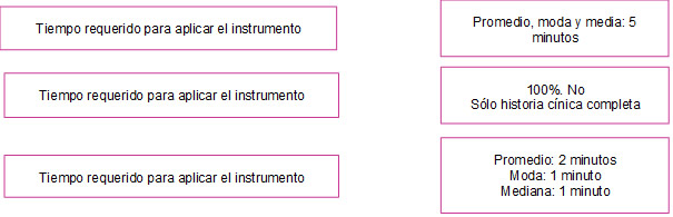 En la prueba de confiabilidad en cuanto a la aplicación por diferentes personas, se obtuvo una concordancia por Kappa Cohen de 0.7 en el puntaje emitido y en interpretación de resultados (como positivo o negativo) de 1.0, siendo una buena concordancia y muy buena concordancia, respectivamente. En la concordancia en el momento de aplicación, con metodología test re-test, se analizó correlación de Pearson, obteniendo resultado de 0.899, siendo una muy alta correlación.