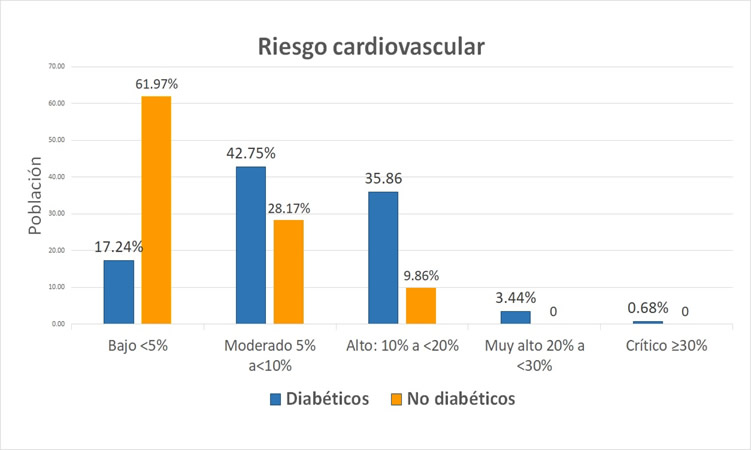 Conclusions: Patients with diabetes mellitus have a greater risk for cardiovascular disease, irrespective of socioeconomic status, deserving special attention those patients that additionality present hypertension, dyslipidemias and overweight.